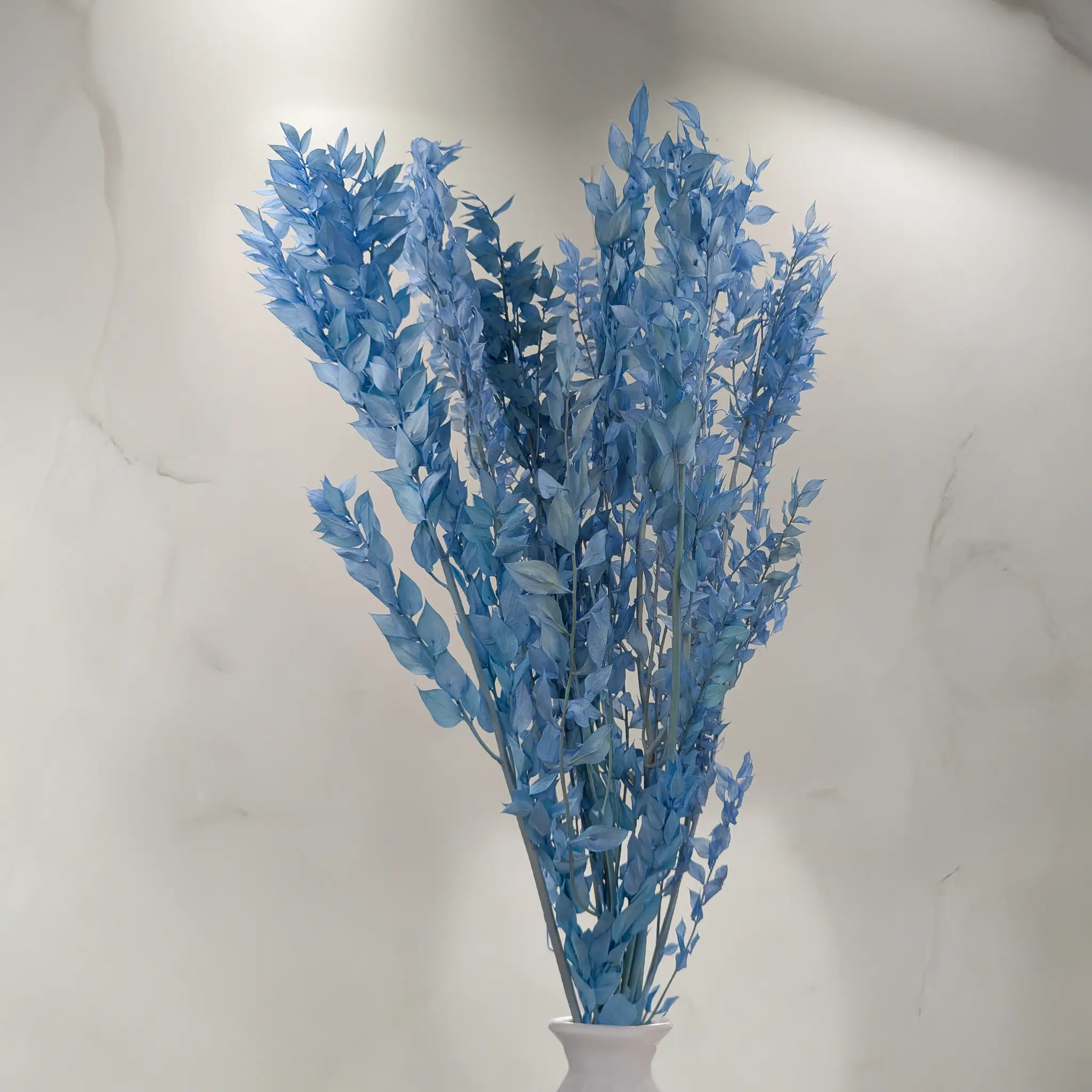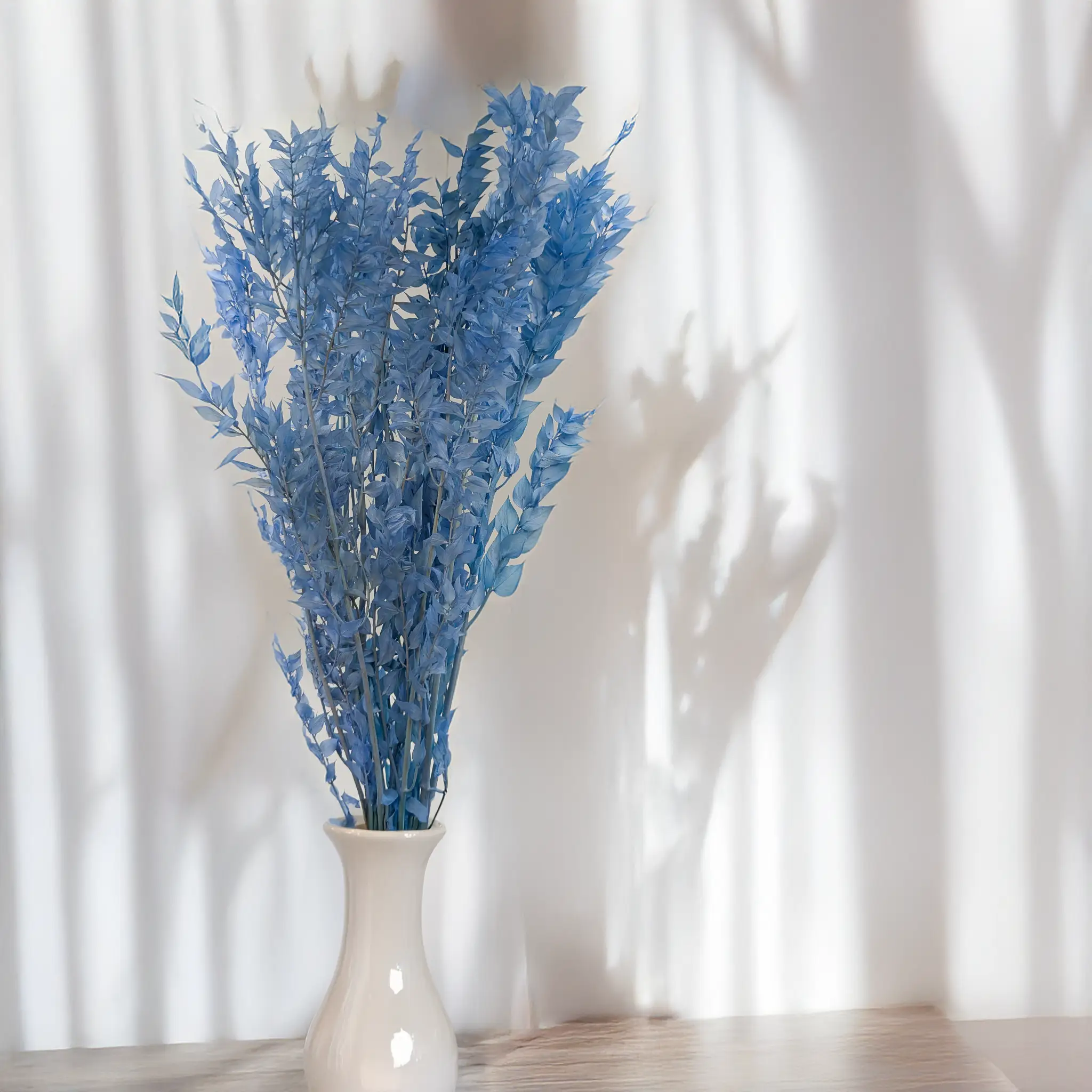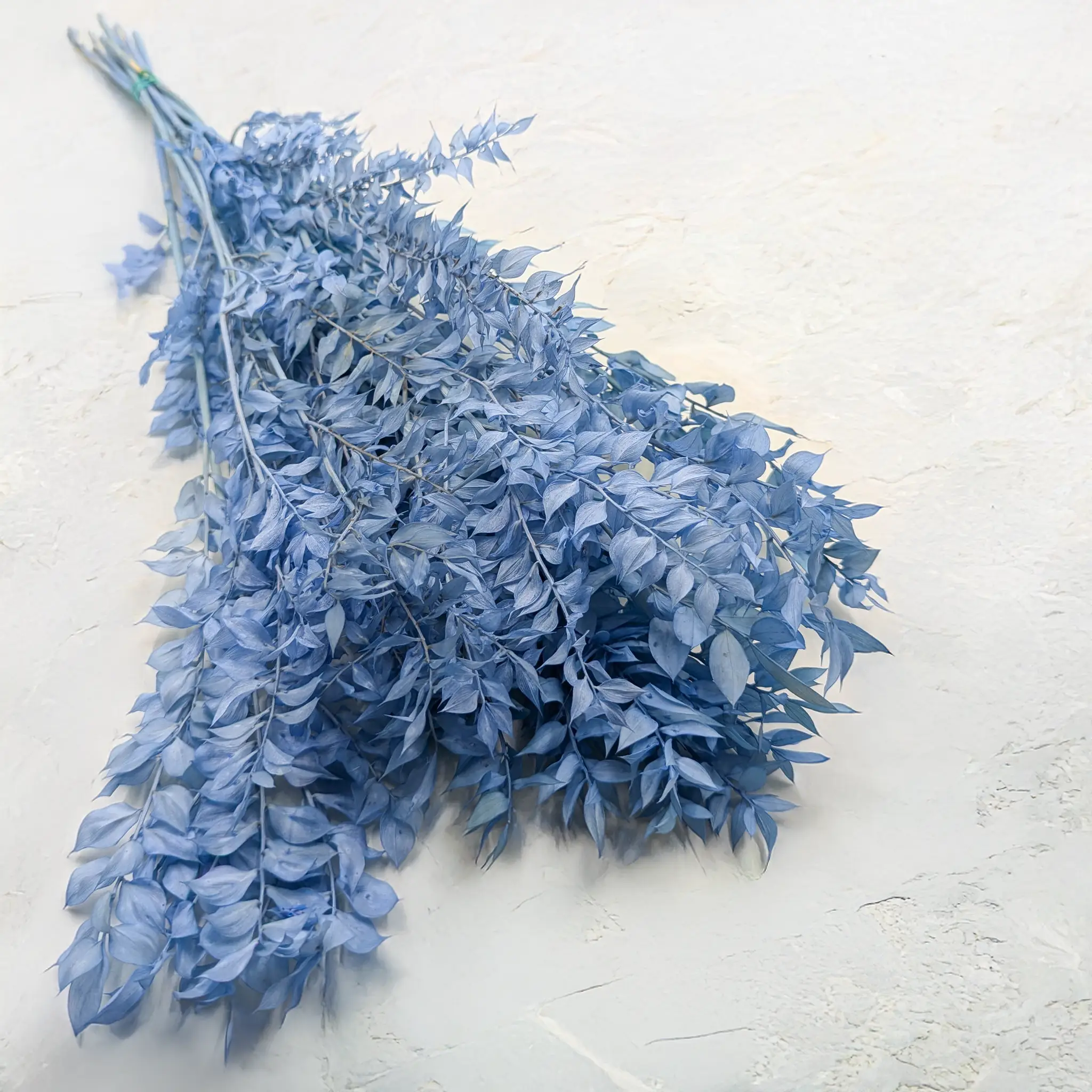 Preserved ruscus in a steel blue shade is a modern and elegant decorative element that stands out with its cool, refined tone. Thanks to the preservation process, it retains its natural structure, fresh look, and flexibility for months without any care. Perfect for contemporary, minimalist, and glamour-style arrangements.