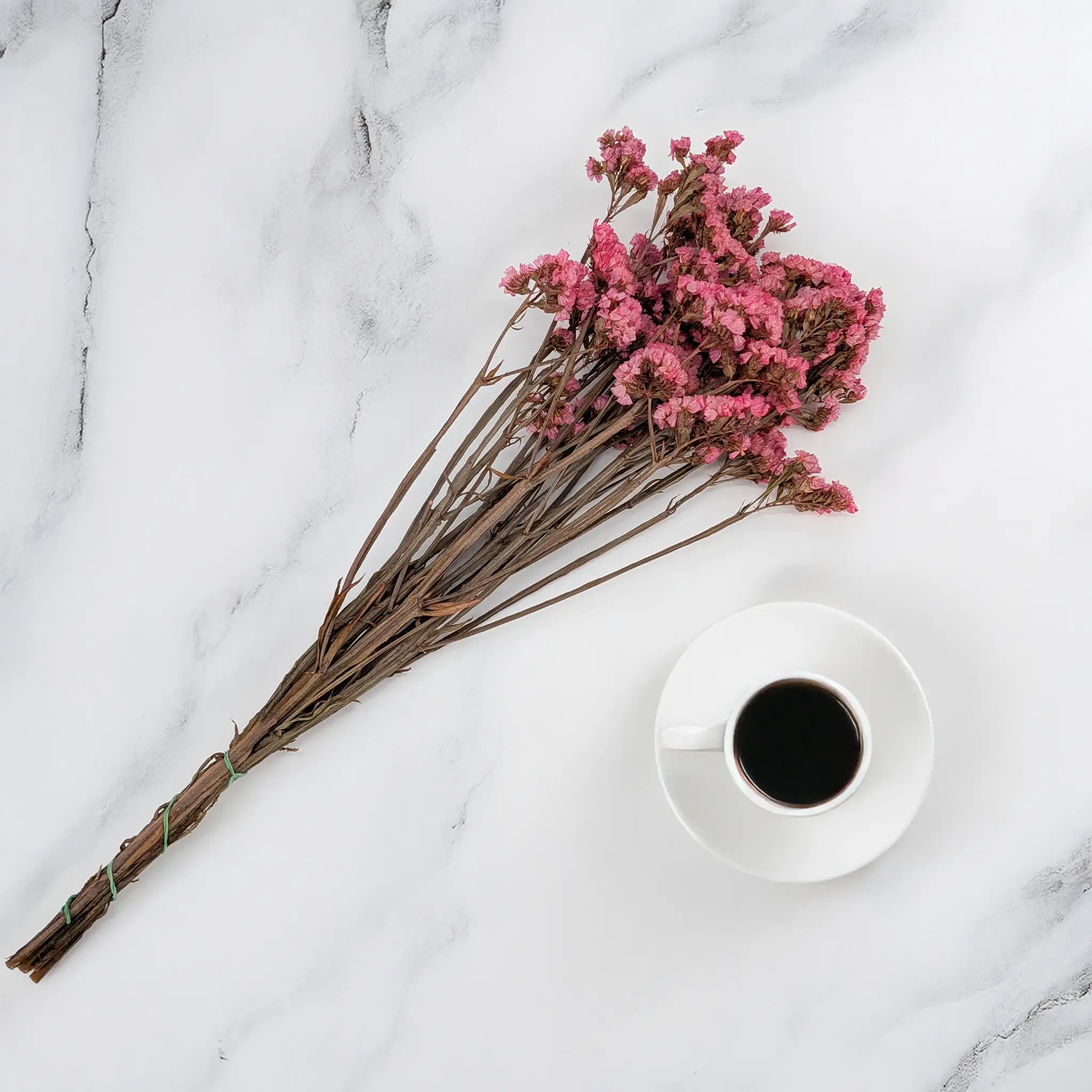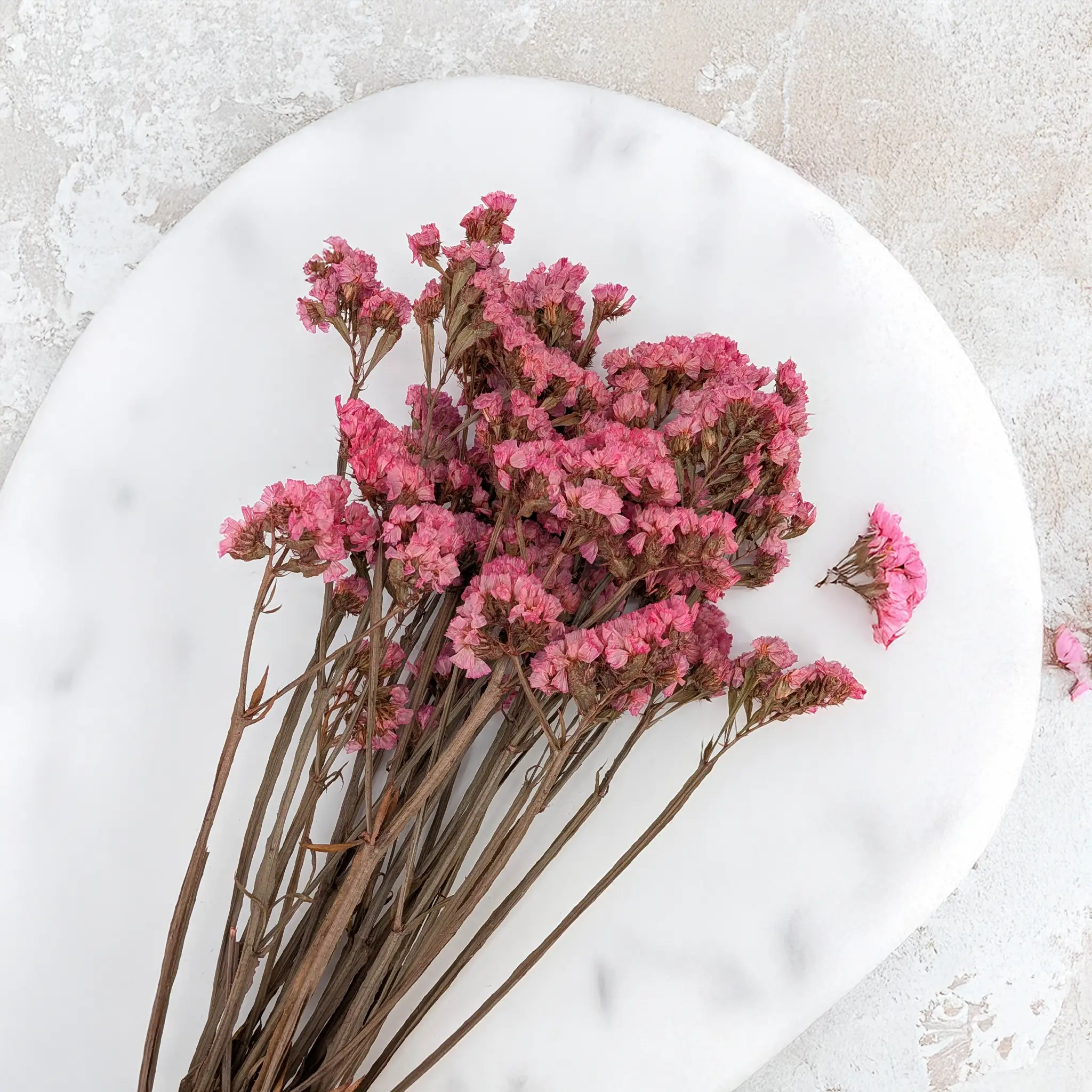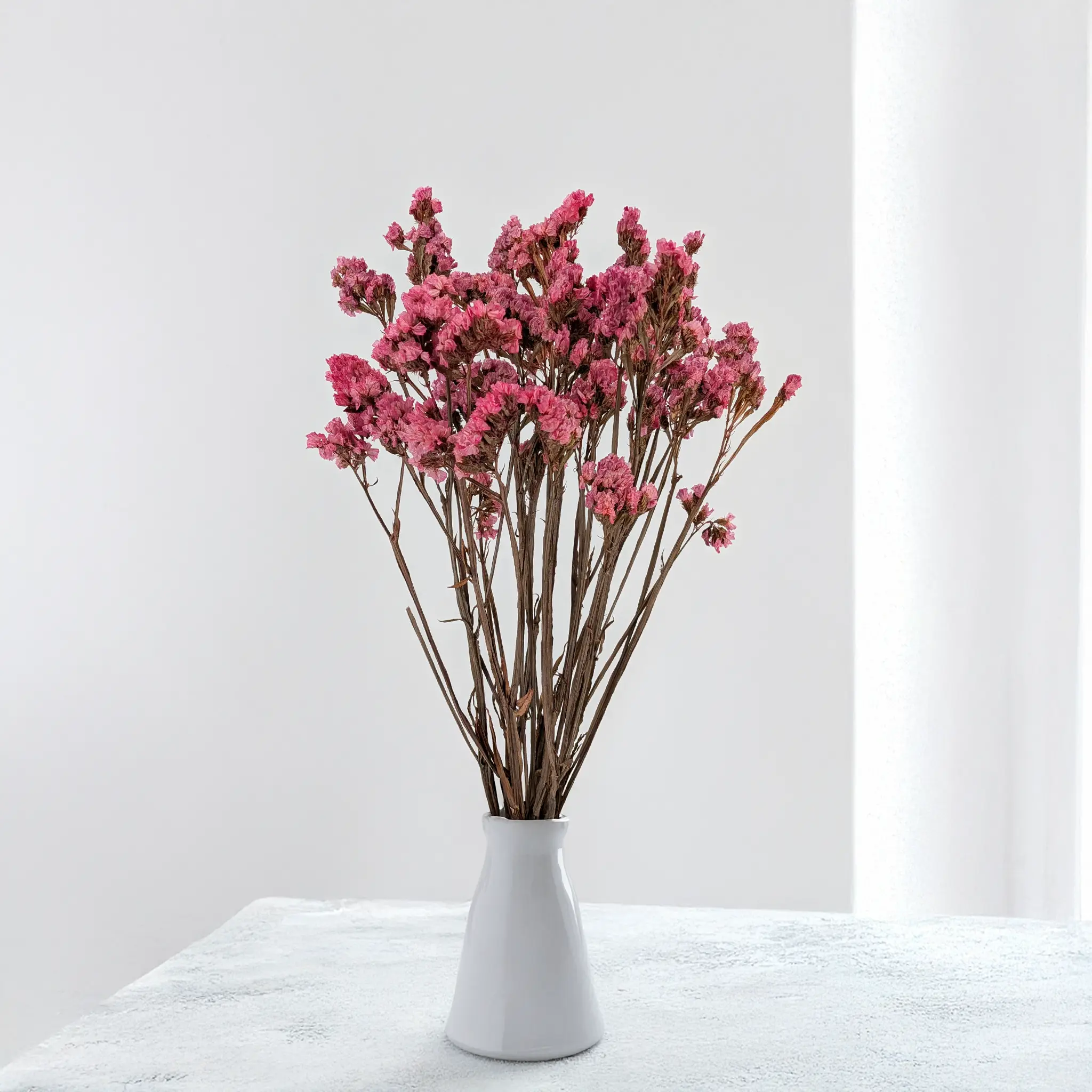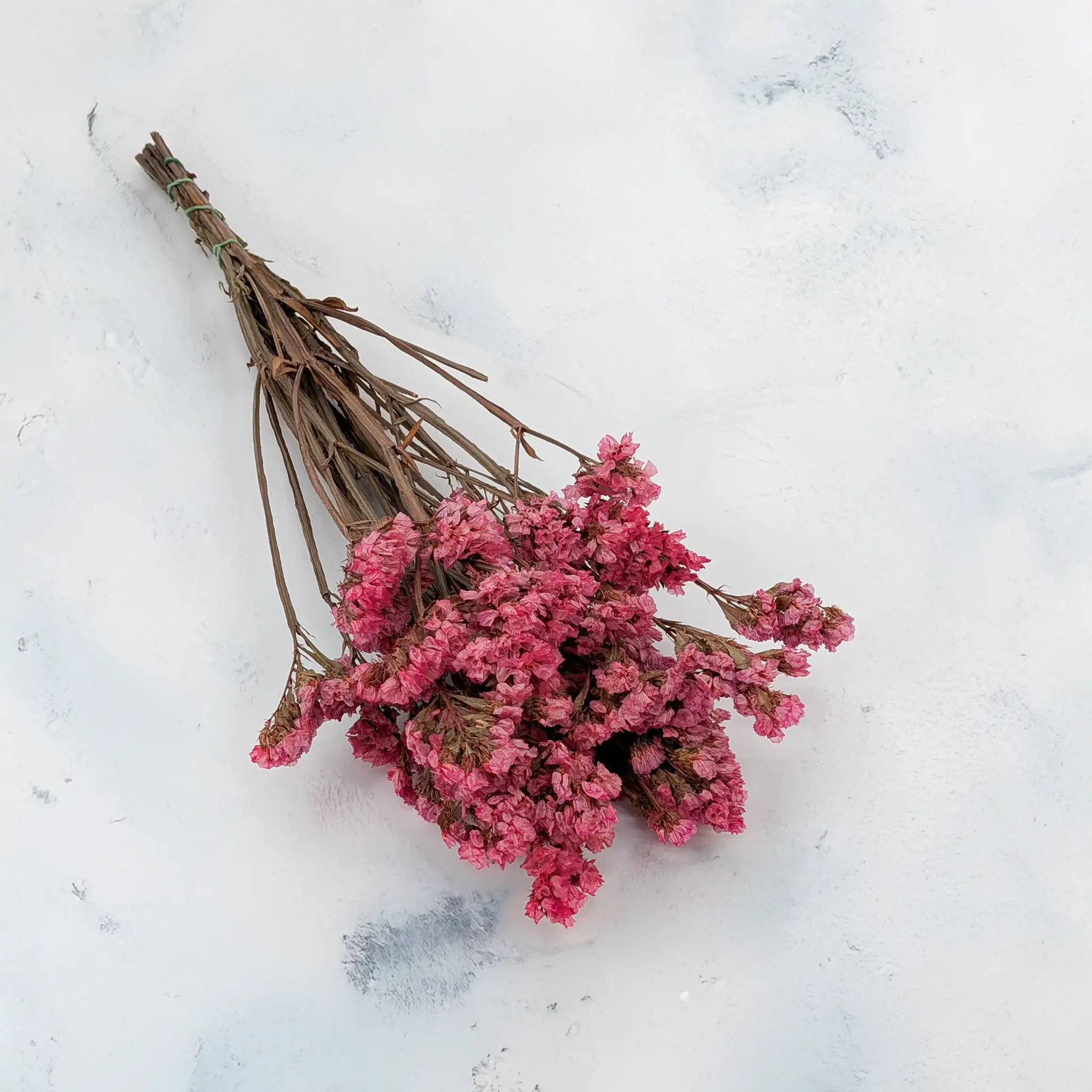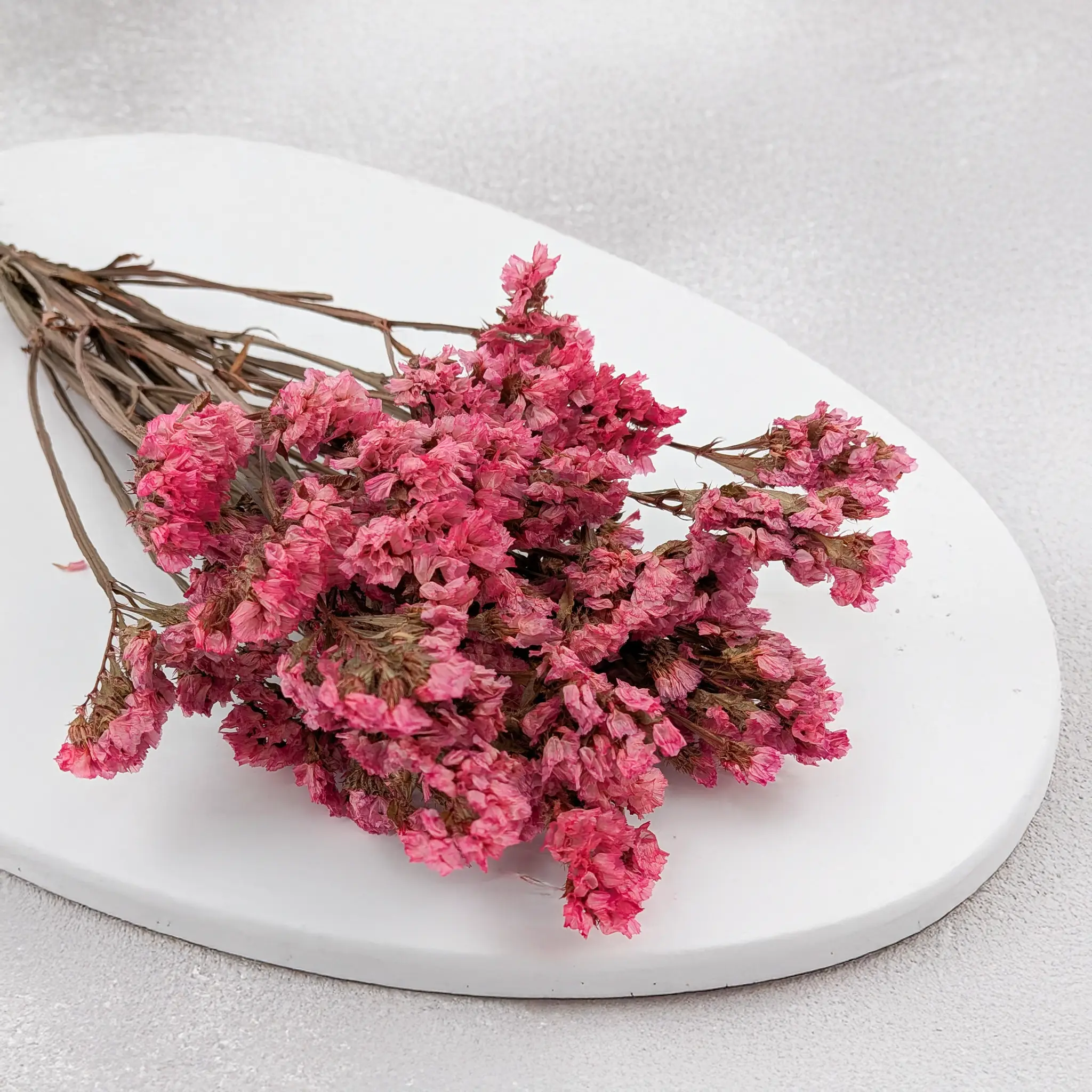 Preserved statice in a soft pink shade adds a romantic and refined touch to floral arrangements. Thanks to the preservation process, it remains flexible, soft, and fresh-looking without any maintenance required.