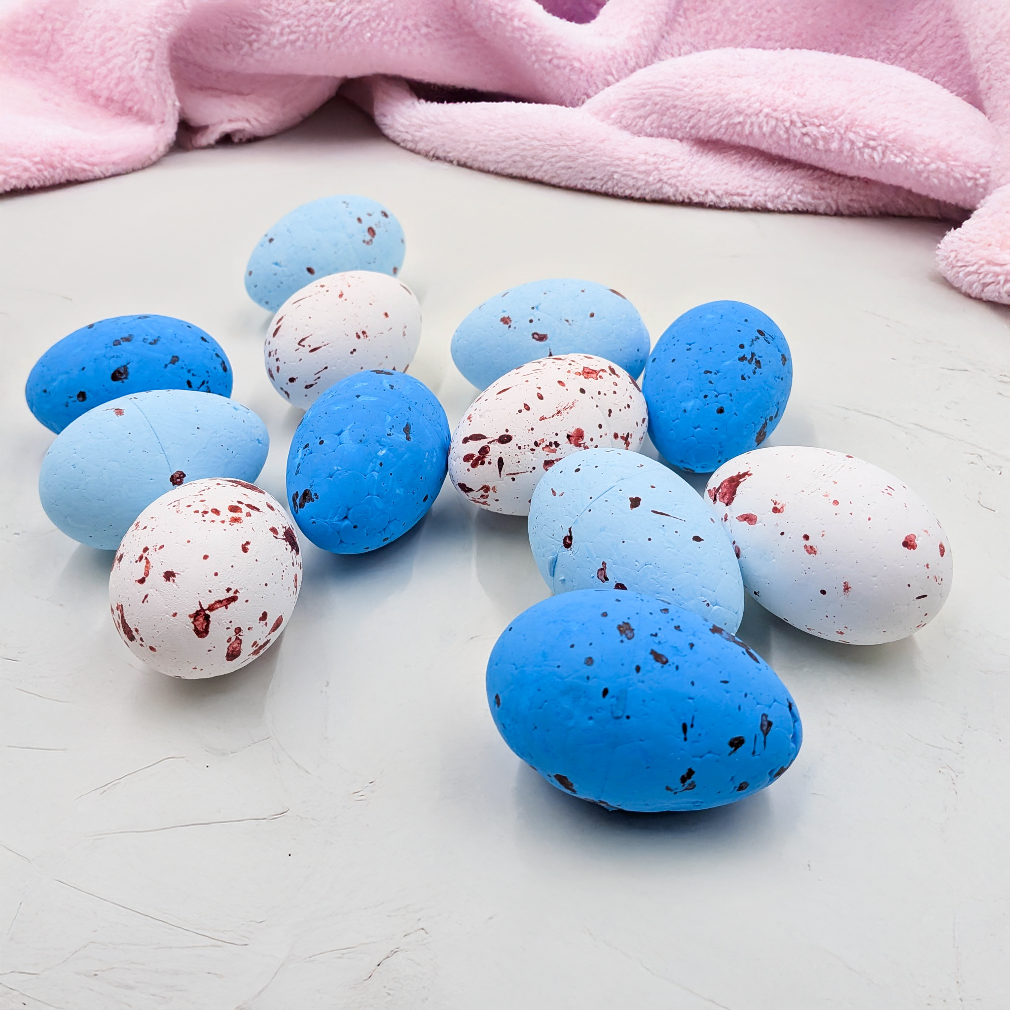 Styrofoam Quail Eggs 4×6 cm – Blue Mix – Set of 12