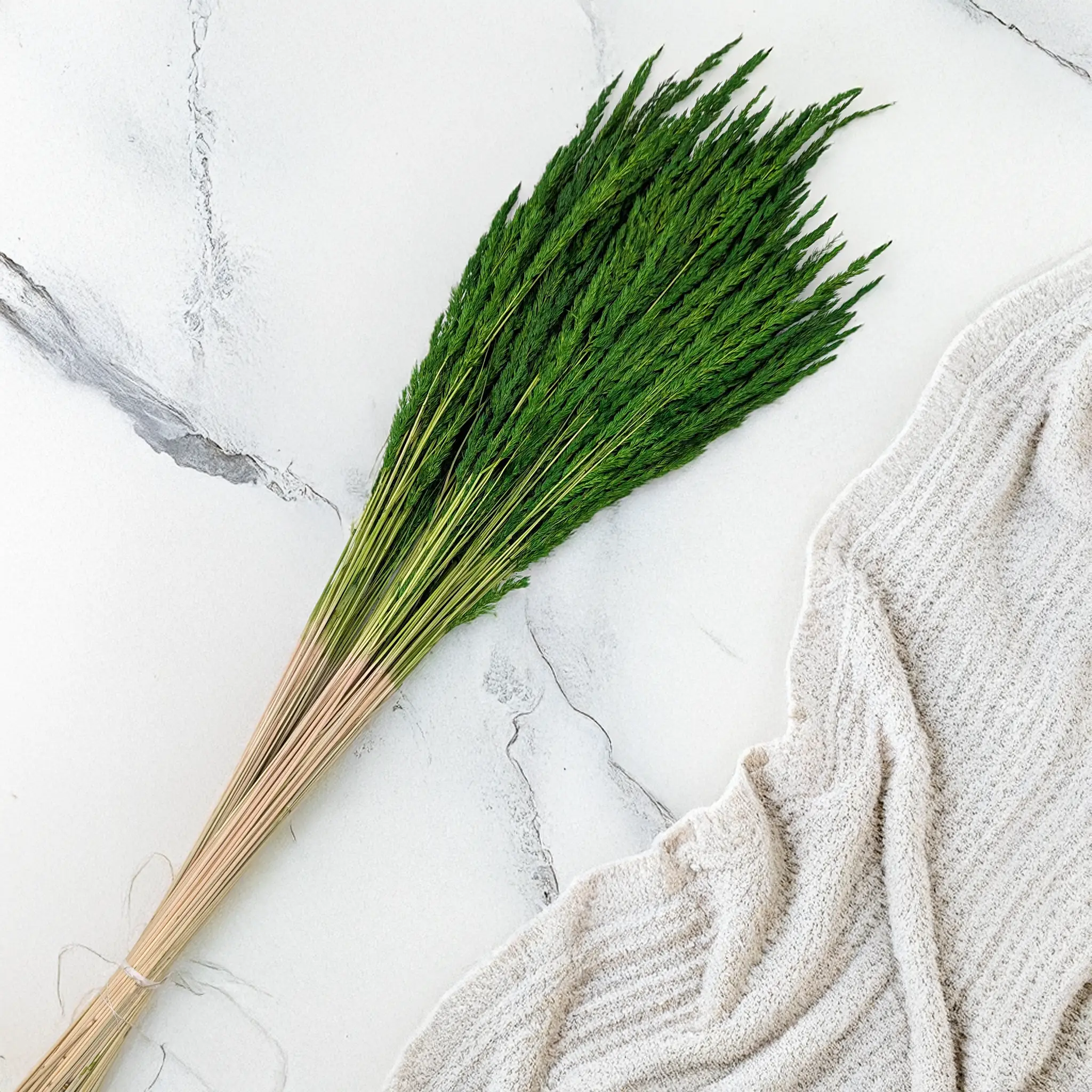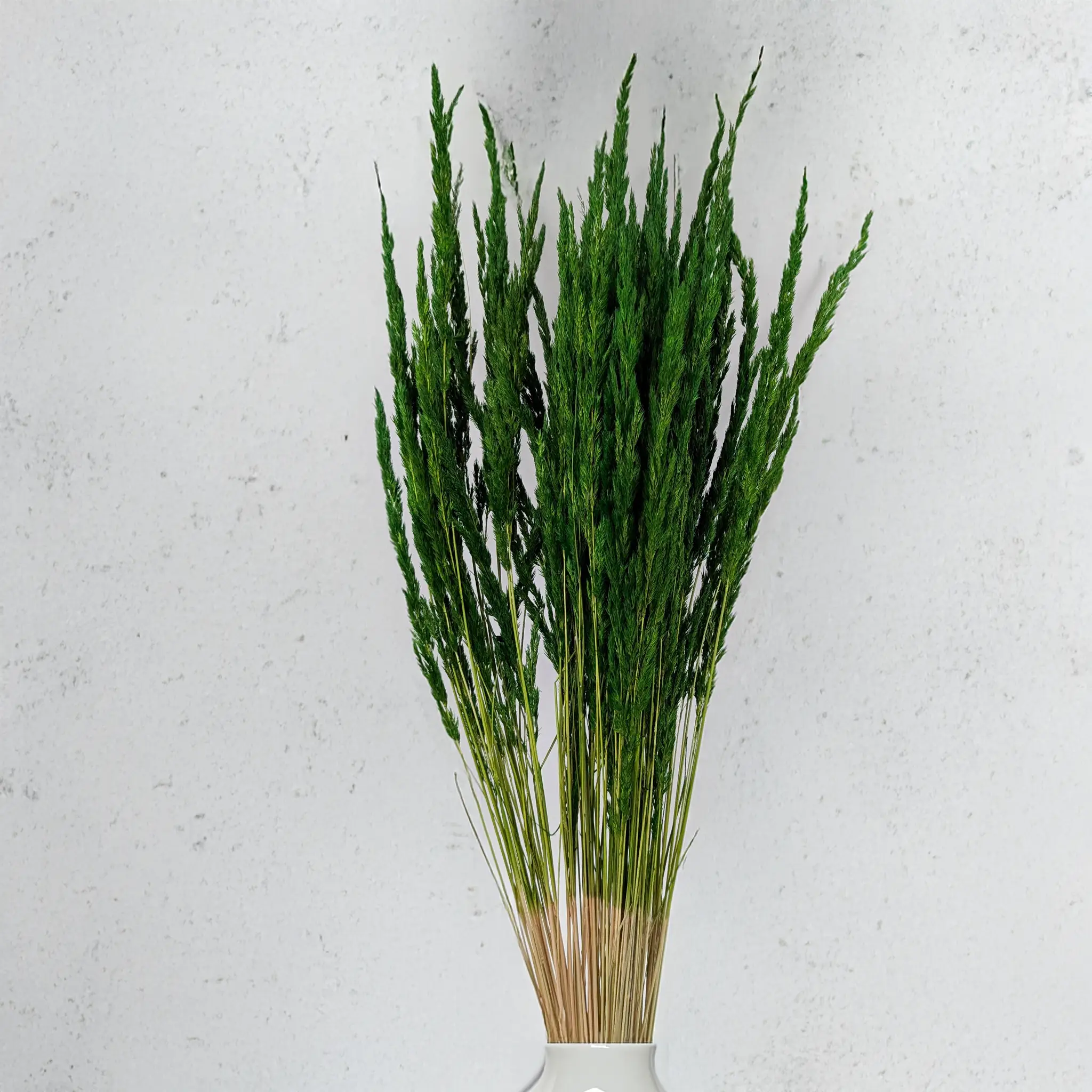 Bottle green Reed Grass is a naturally dried decorative grass that retains its softness and volume. The color is rich and long-lasting, with a subtle sheen that enhances its natural beauty. Each stem adds texture and depth to compositions, serving as an elegant background for lighter tones.
