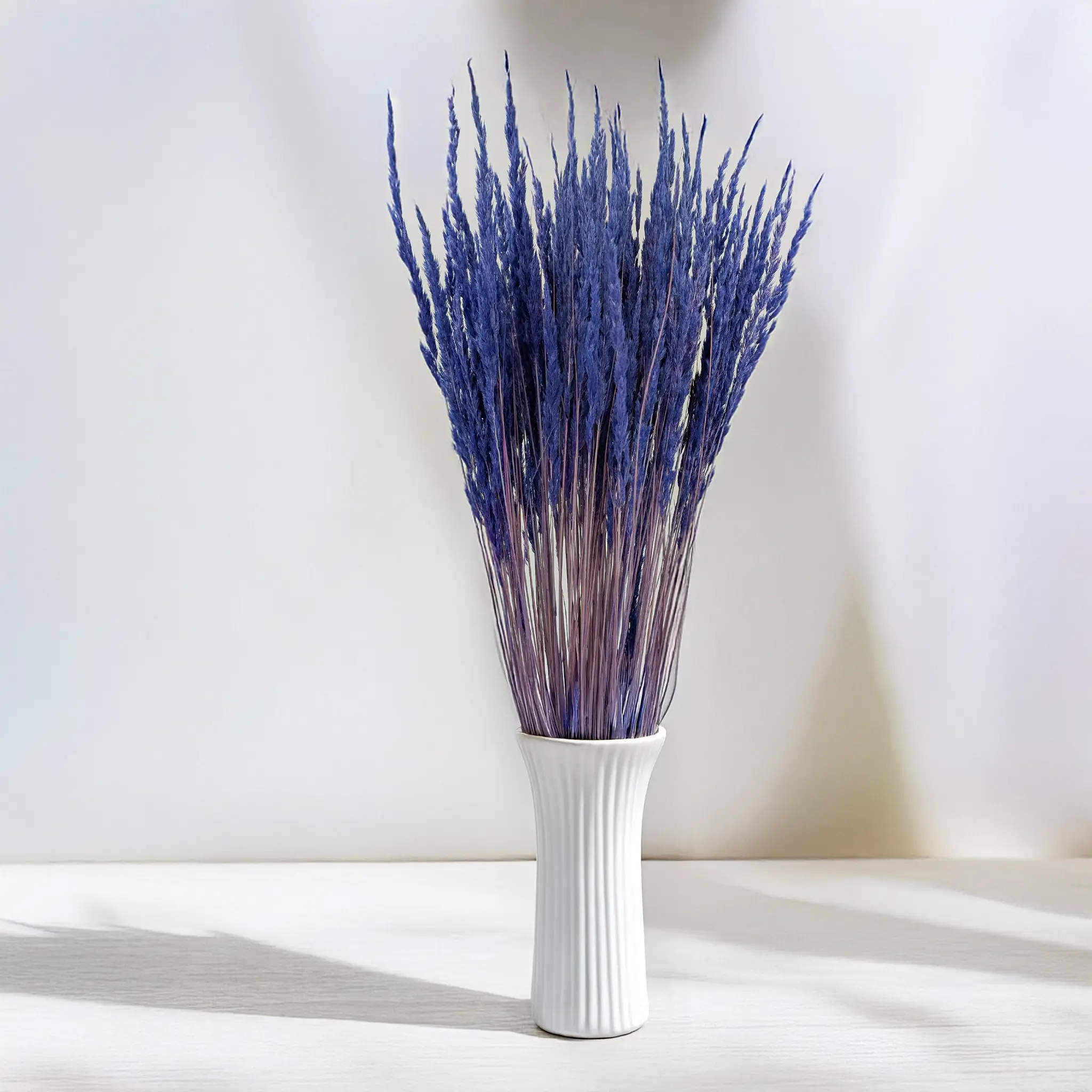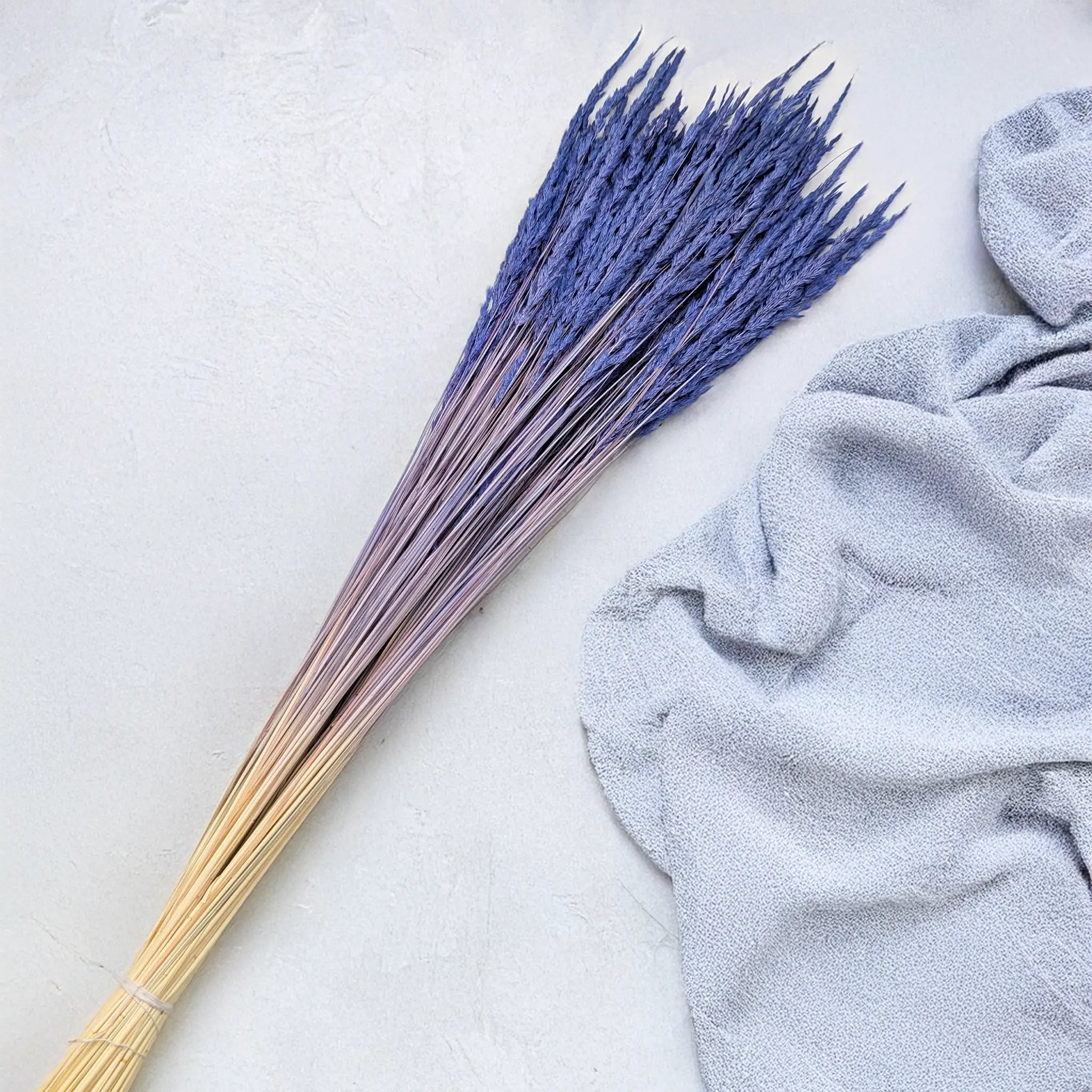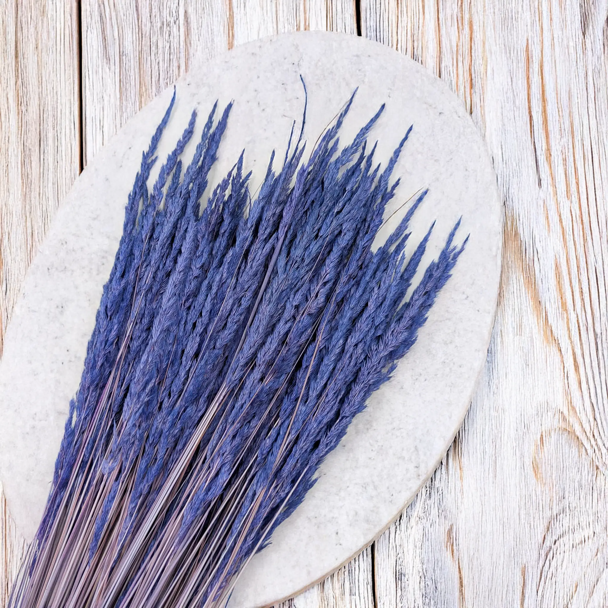 Dried Calamagrostis (Calamagrostis epigejos) in a rich navy blue tone adds a refined and mysterious accent to any interior. The deep shade of blue perfectly complements boho lux, glamour, loft, and minimalist arrangements, bringing contrast and harmony at the same time.
