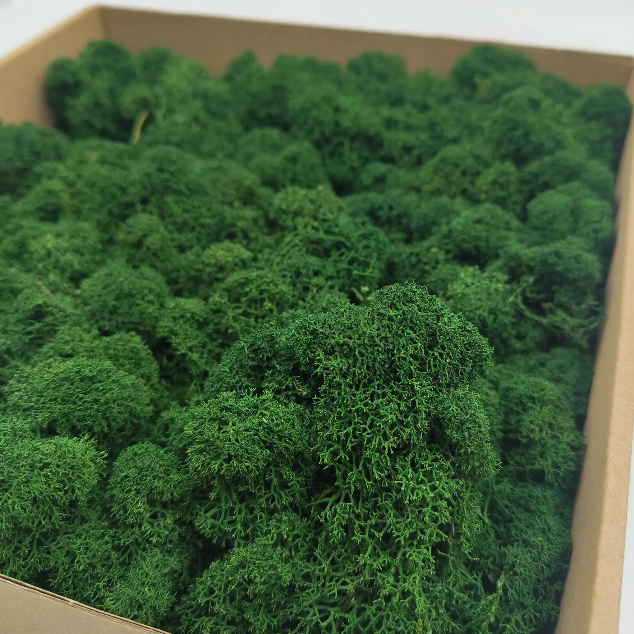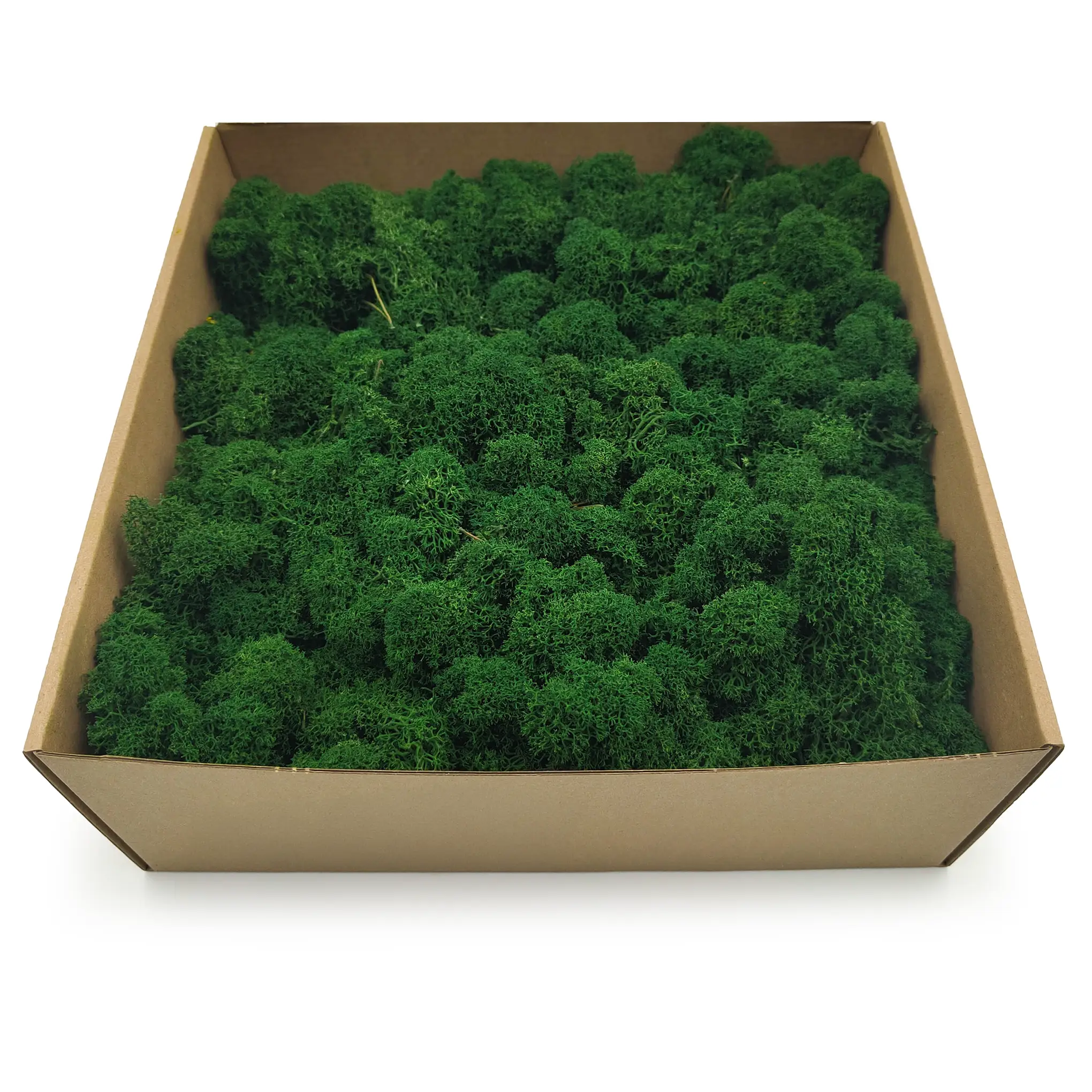 Bottle green Finnish moss offers a timeless aesthetic, perfect for classic, loft, or minimalistic interiors. With large, fluffy heads and a rich color tone, it adds depth and contrast to any composition. Excellent for logos, wall installations, and decorative accents.
