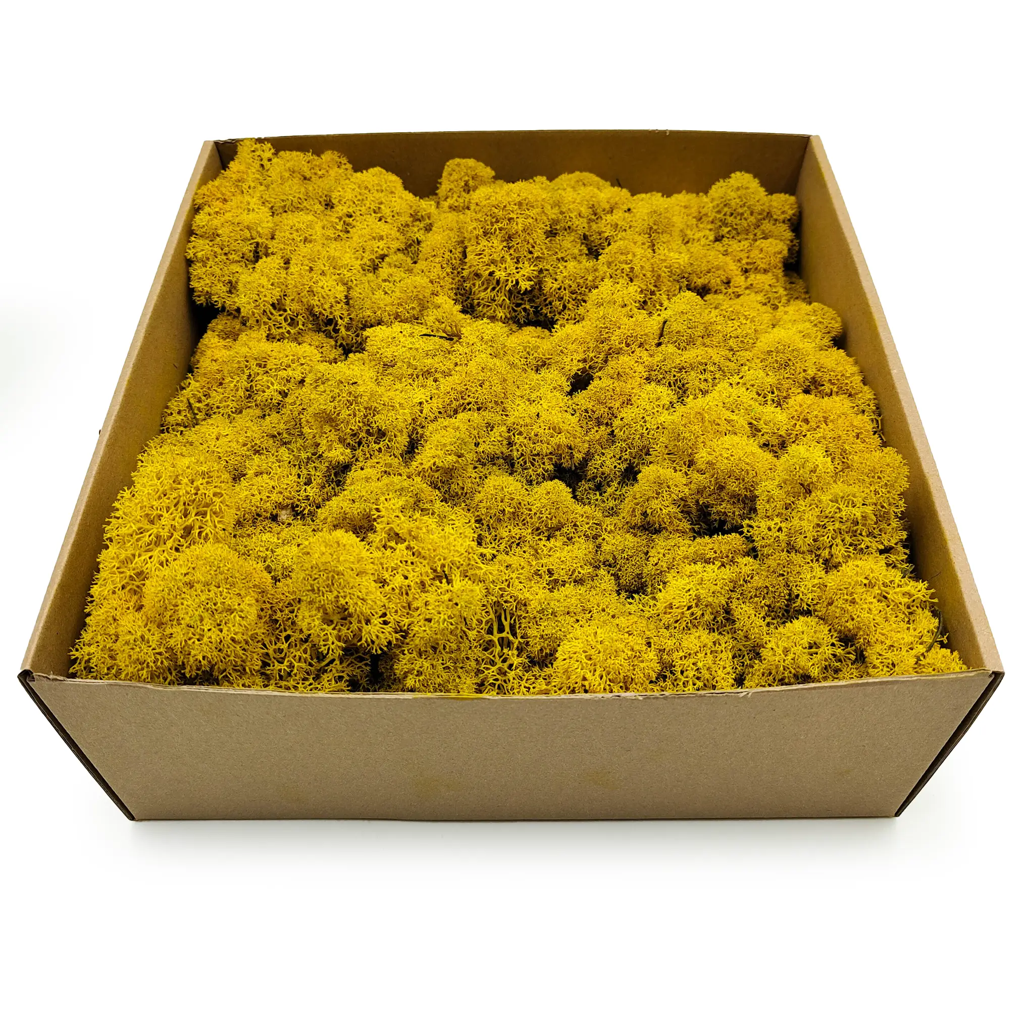 This Finnish reindeer moss dyed in a vivid yellow adds a bold and sunny accent to your design. Naturally preserved and carefully cleaned, it features large heads and rich texture – perfect for modern moss walls, signs, or DIY projects.