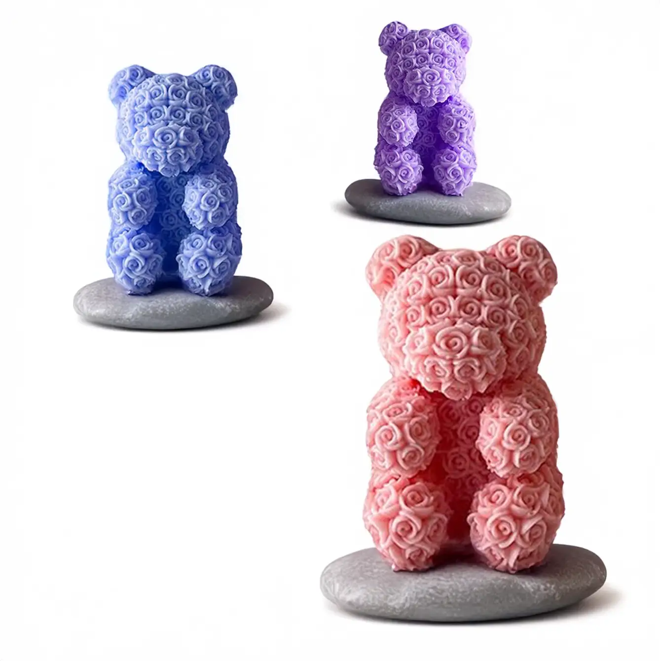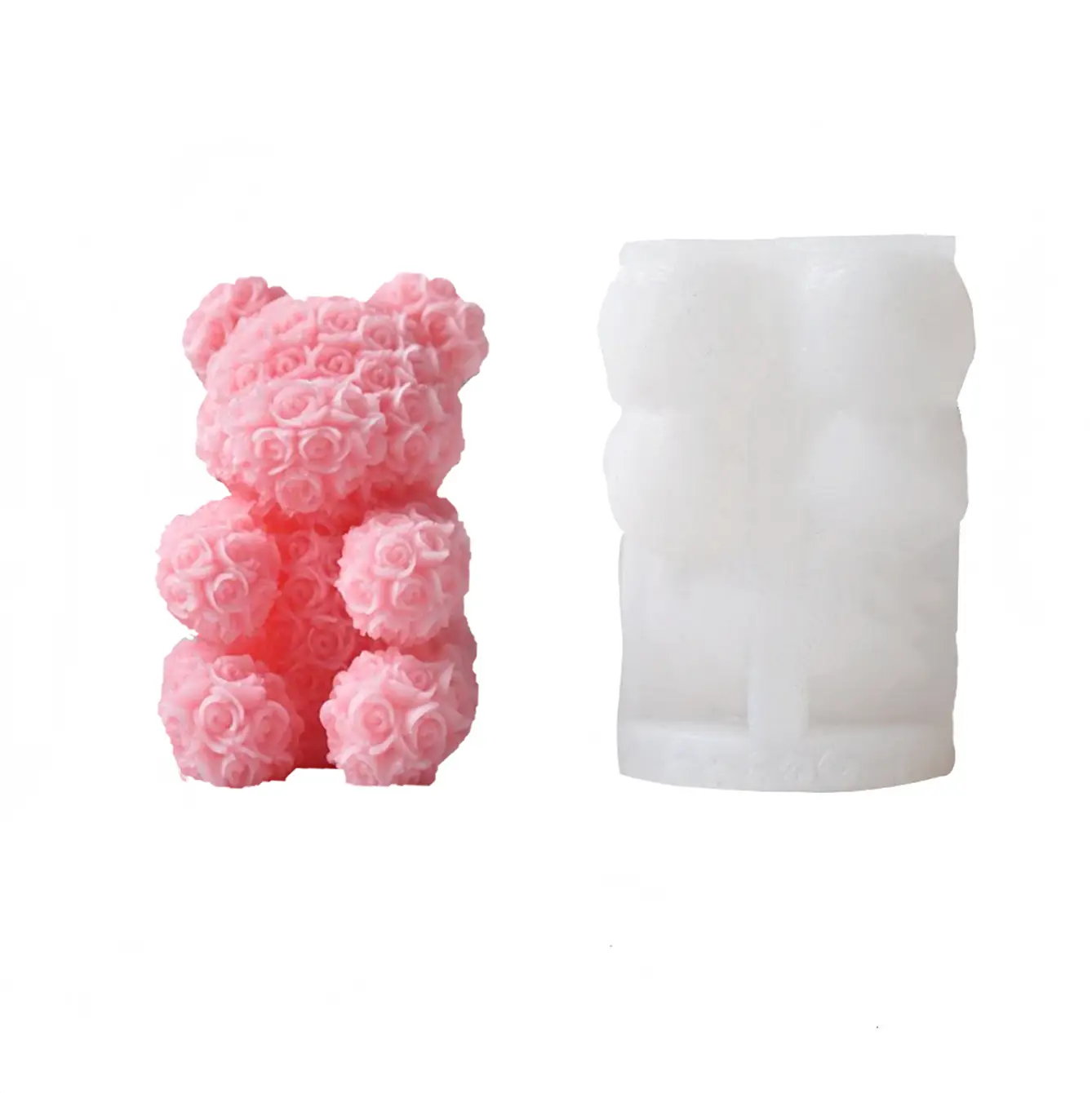 The mold features a bear covered in rose flowers, making it an ideal choice for decorative pieces, gifts, or unique decorative elements. It can be used to create not only candles but also soaps, concrete figurines, or resin casts.