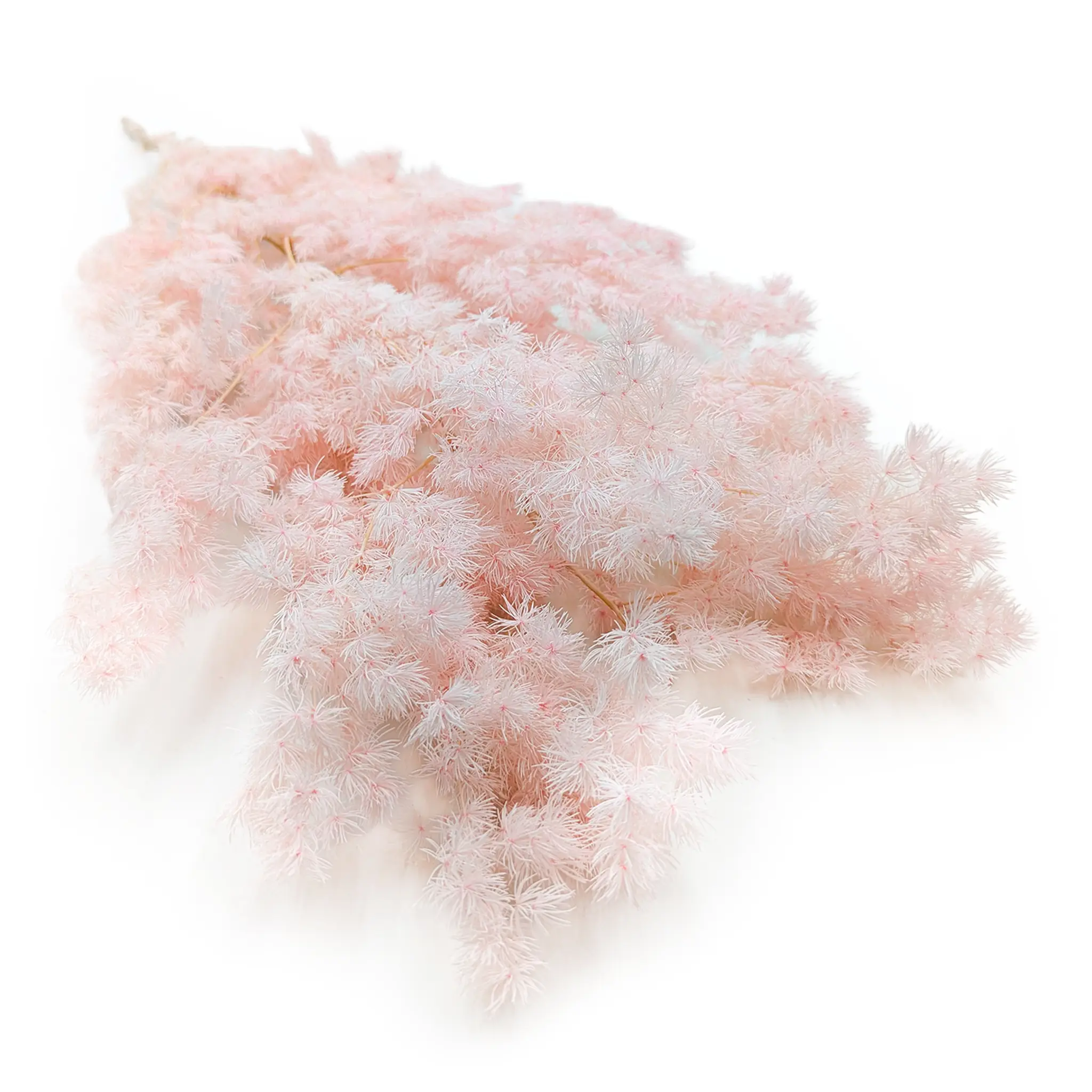Pastel Pink Ming Fern is the embodiment of romantic delicacy captured in soft, feathery branches. Thanks to the preservation process, this botanical retains its gentle structure and natural appearance for a long time, making it a lasting accent in floral design and interior decoration.