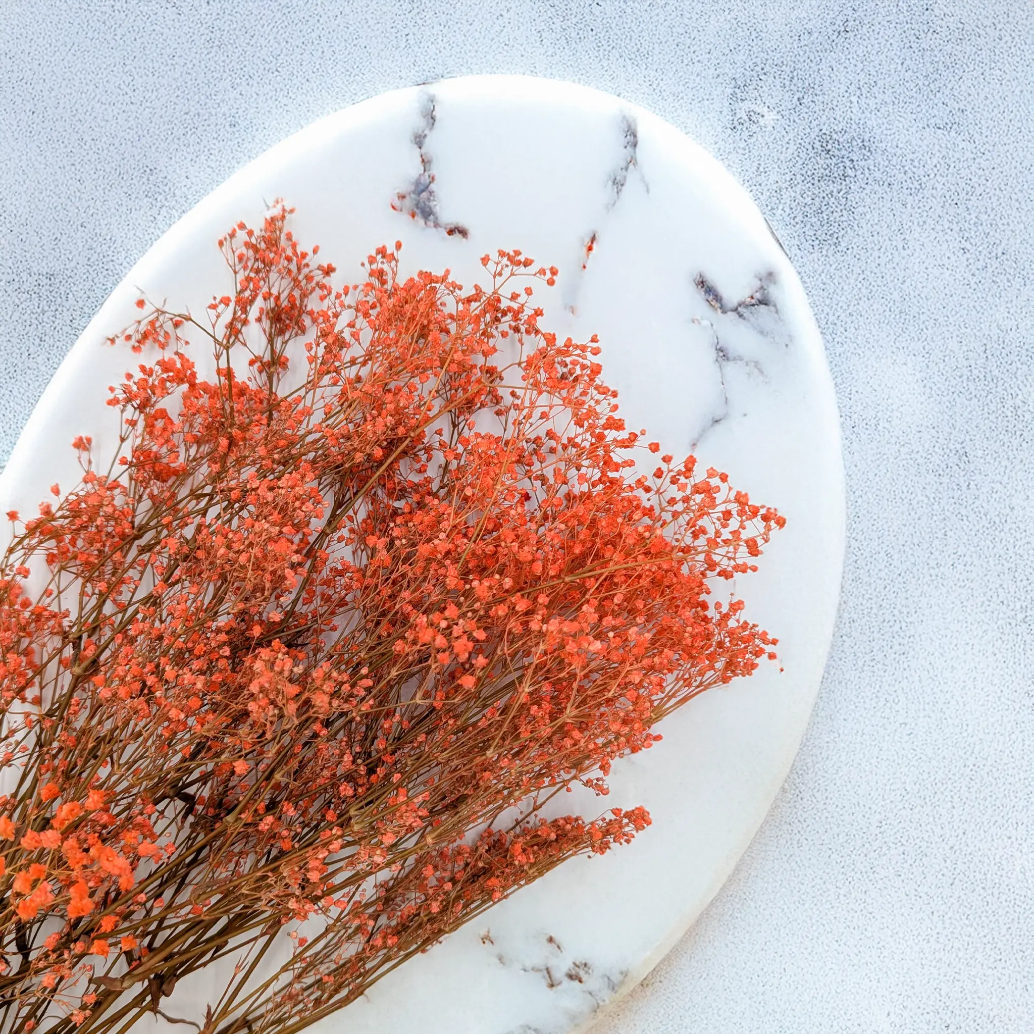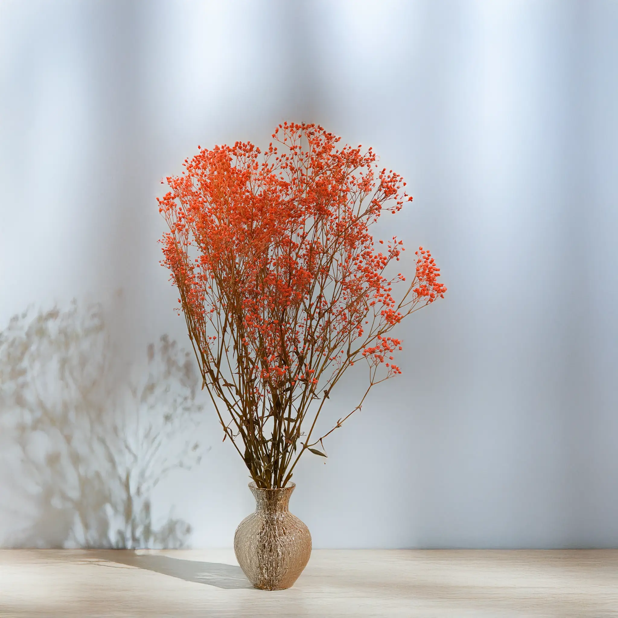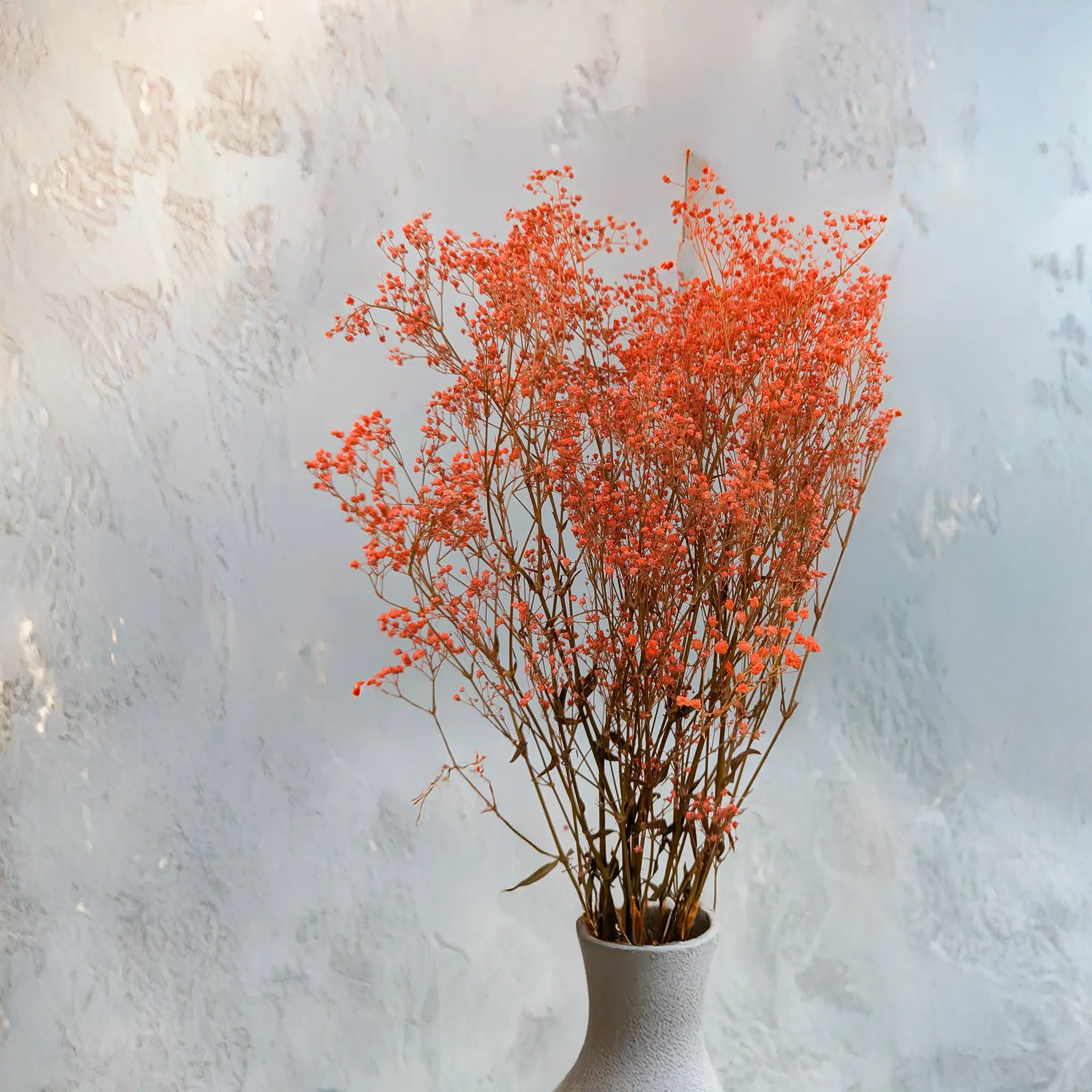 Pastel orange preserved gypsophila brings warmth, energy, and joy to any interior or floral arrangement. Its soft tone symbolizes creativity, optimism, and harmony – perfect for spring and summer décor.