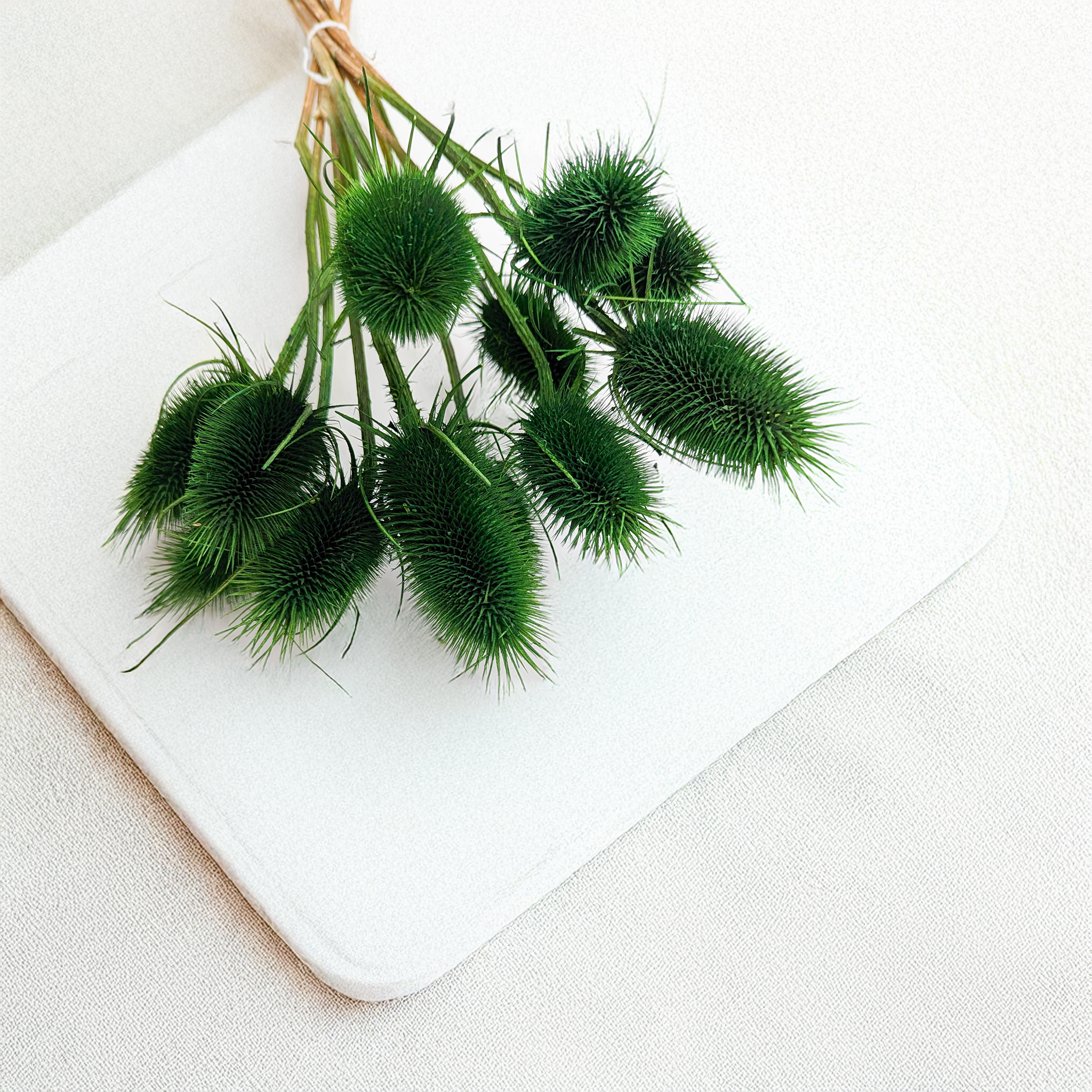 Dried Green thistle, also known as teasel. Perfect for bouquets, natural floral compositions. Great for wedding arrangements, holiday decorations, etc.
